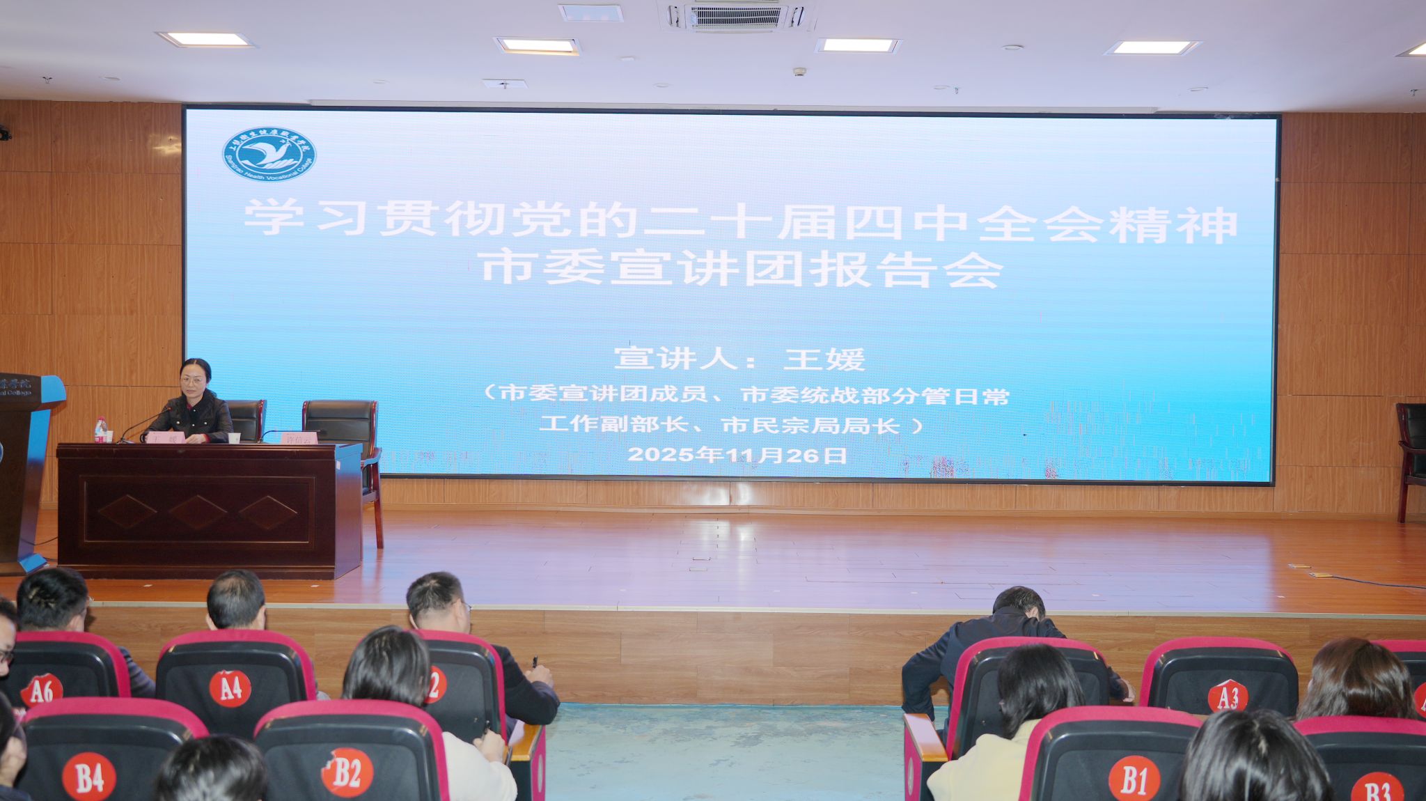 学习会邀请市委宣讲团成员,市委统战部分管日常工作的副部长、市民宗局局长、市委台办主任王媛作学习专题辅导。报告会紧紧围绕学习贯彻习近平总书记在党的二十届四中全会上的重要讲话精神和《中共中央关于制定国民经济和社会发展第十五个五年规划的建议》,主题鲜明、内涵丰富,为深刻领会和准确把握全会精神,切实抓好贯彻落实提供了有力指导。