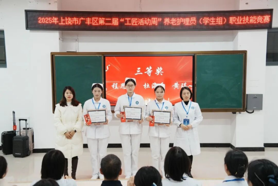 12月13日,由上饶市广丰区人力资源和社会保障局、上饶高新区、区总工会等多部门联合举办的第二届工匠活动周养老护理员职业技能竞赛(学生组)在我校成功举行。赛事由我校护理学院承办,来自全区各院校的24名相关专业学生参加了决赛。