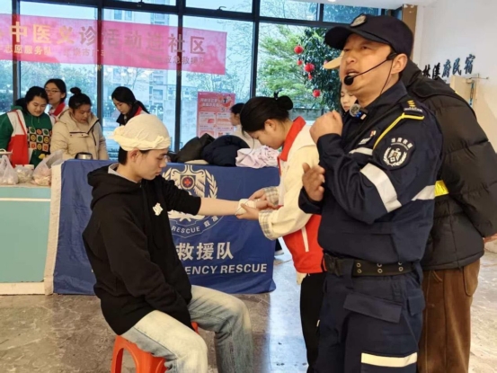 为把应急救护技能与中医健康服务送到居民身边, 3 月 19 日下午,我校红十字志愿服务队、康养学院志愿者联合上饶市广丰区红十字雄鹰救援队,共同走进广丰区芦林街道林溪府社区,开展红十字应急救护普及与中医义诊进社区公益活动,以专业服务守护群众健康,以实际行动传递温暖关怀。